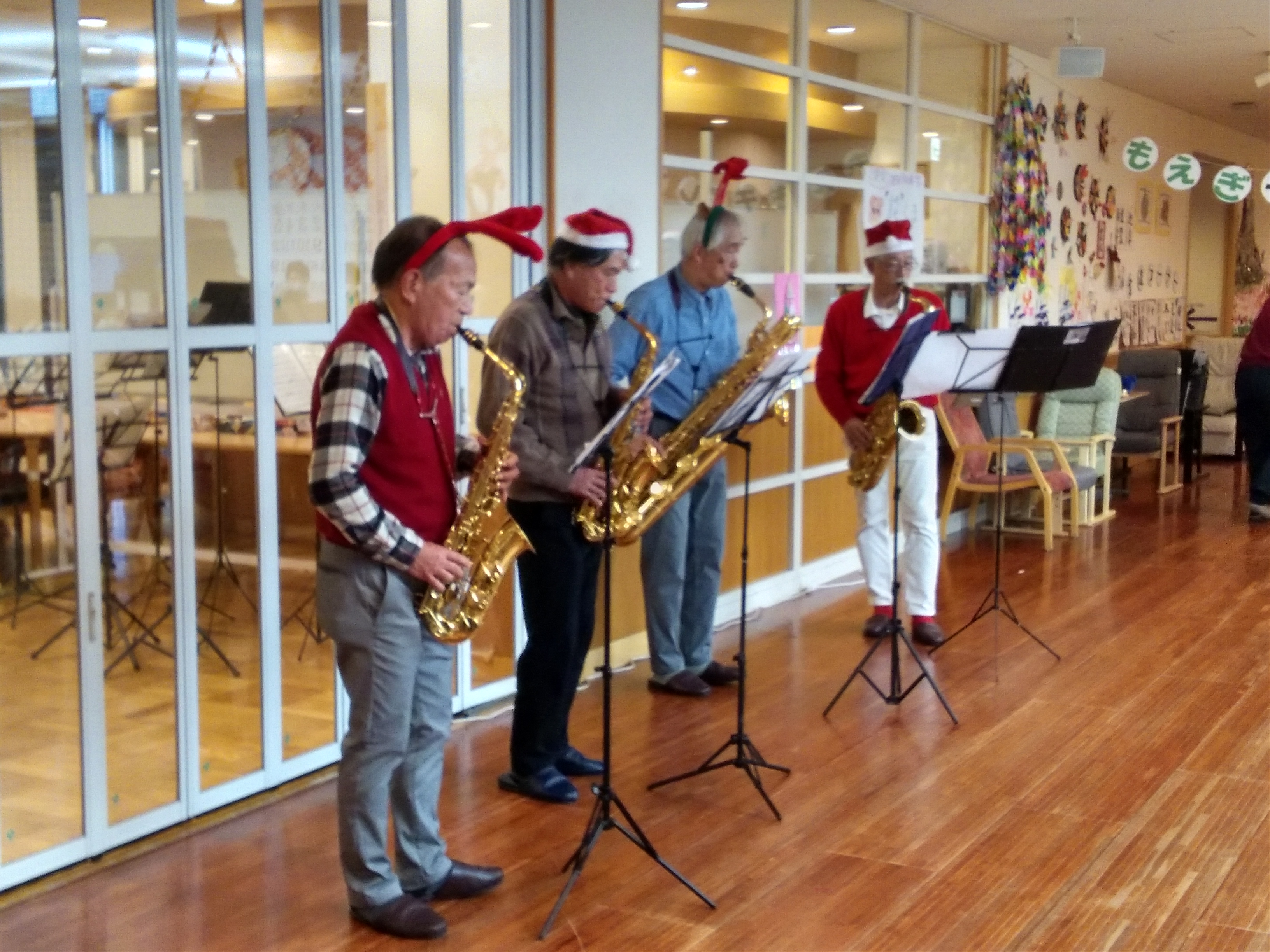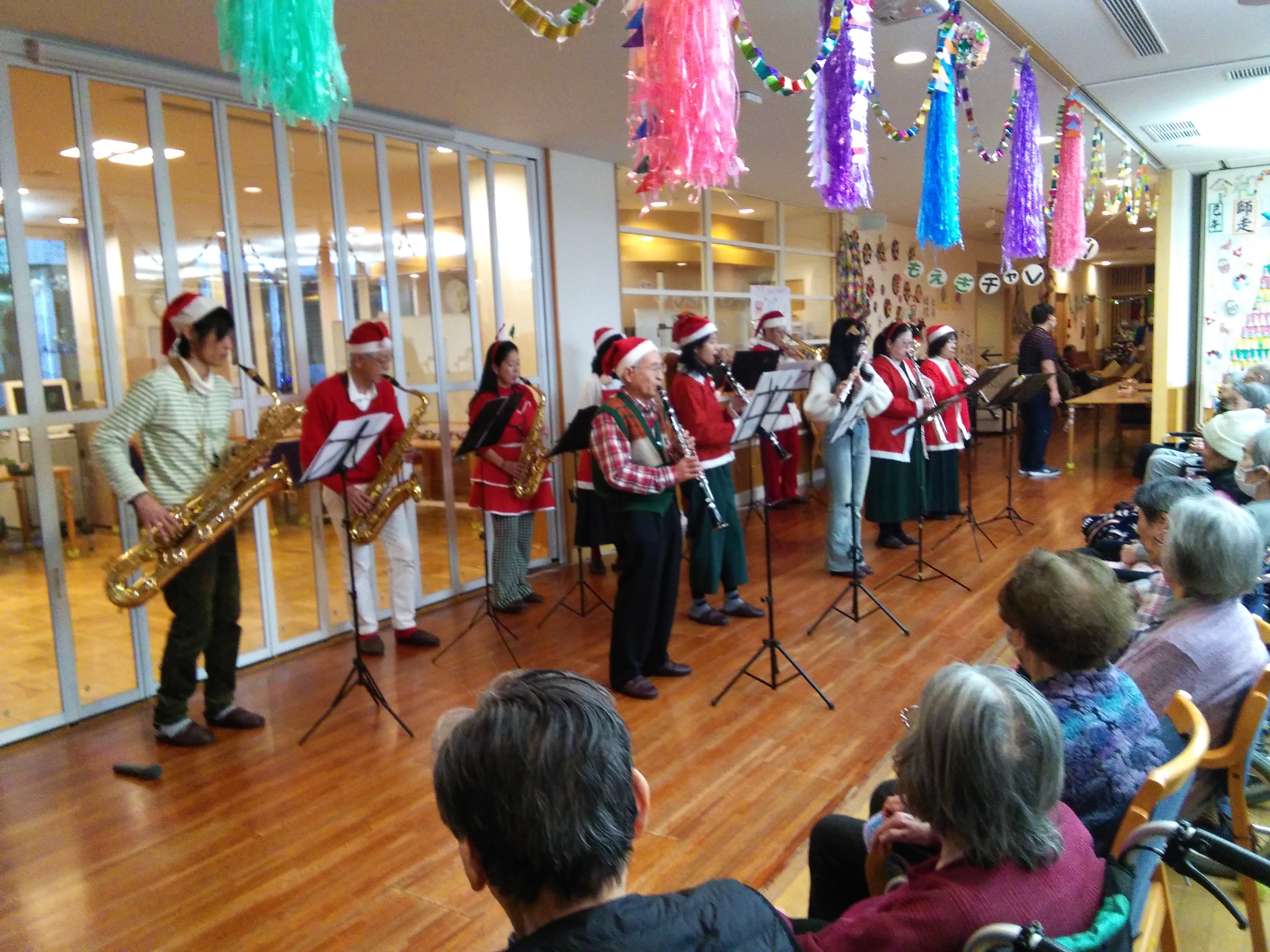 昨年と同様、特養で小阪楽器ウインドアンサンブルの皆様によるクリスマスコンサートがありました🎷🌟