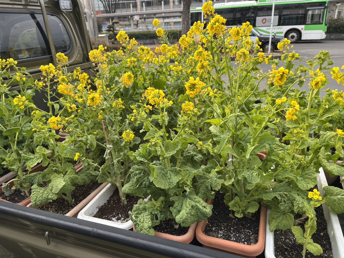 1月24日(土)、下小阪東自治会で種から育ててきた菜の花を並べてきました。 司馬遼太郎さんが愛した風景を、こうして地道に守り続けています。