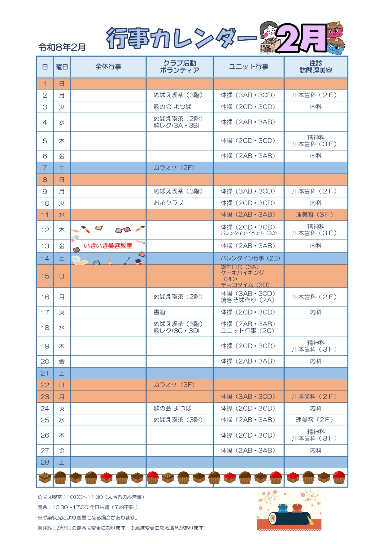 2月の行事カレンダーです⛄